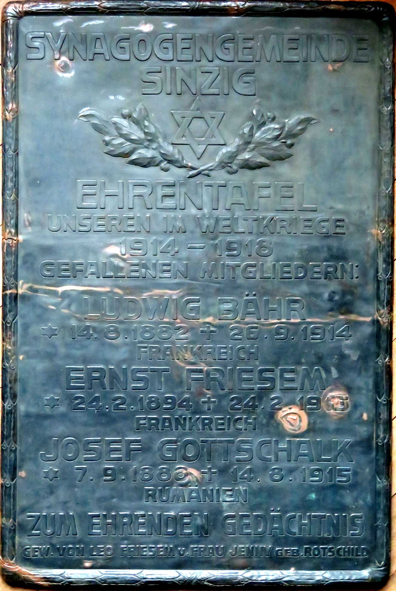 Die Ausschreitungen gegen die deutschen Juden am 9./10. November 1938 waren staatlich geplante, vorbereitete und gelenkte Aktionen von SA- und SS-Mitgliedern. In Sinzig räumten SA-Leute aus Brohl, Heimersheim und Bad Neuenahr die Synagoge leer, demolierten den Innenraum und steckten das gesamte Inventar im Hof in Brand. Außerdem wurden vier Wohnungen jüdischer Familien und ein Geschäftshaus schwer beschädigt.