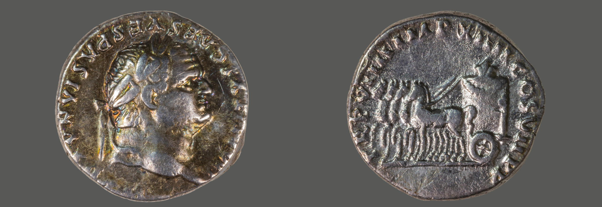 Titus war der zweite Kaiser der Flavischen Dynastie. Er eroberte Jerusalem und ließ den zweiten Tempel zerstören, das damals größte Heiligtum der Welt. Den Bau des Kolosseums in Rom ließ er fertigstellen. Als der Vesuv im Jahre 79 n. Chr. die Städte Pompeji, Herculaneum und Stabiae unter Asche begrub, leitete er Hilfsmaßnahmen für die notleidende Bevölkerung Kampaniens ein. Domitian (Titus Flavius Domitianus)