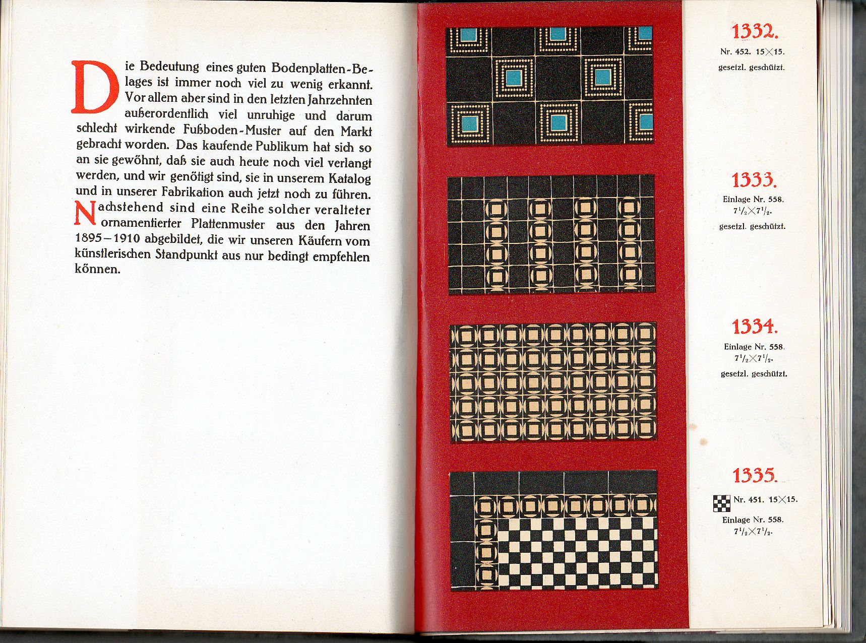 Alle Galerien Fliesenproduktion Film Fliesenpuzzle Das Werk Gebäude Kataloge Schablonen und Fliesen Kalenderfliesen Dokumente Sehen Sie hier einige Kataloge von 1895 bis 1961 Katalog 1895 WordPress Image Gallery Plugin Katalog 1898 WordPress Image Gallery Plugin Katalog 1925 WordPress Image Gallery Plugin Ceramik Mosaik 1925 WordPress Image Gallery Plugin Faltblatt Flambo 1930 1930 Faltblatt Flambo Mosaikplatten 1937 WordPress Image Gallery Plugin Fußbodenfliesen 1953 WordPress Image Gallery Plugin Keramische Bodenfliesen 1961 WordPress Image Gallery Plugin Muster 1870 bis 1895 1870-1895_Muster Muster 1895 bis 1910 1885-1910_Alte Muster